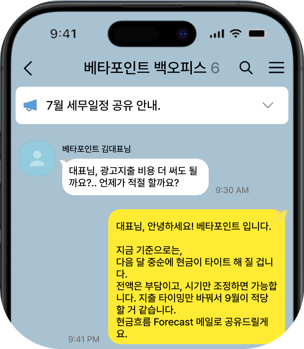 현금흐름을 기준으로 설명해 주셔서 이제는 자금 계획이 훨씬 명확해졌습니다.”
